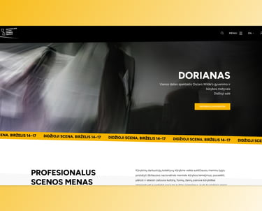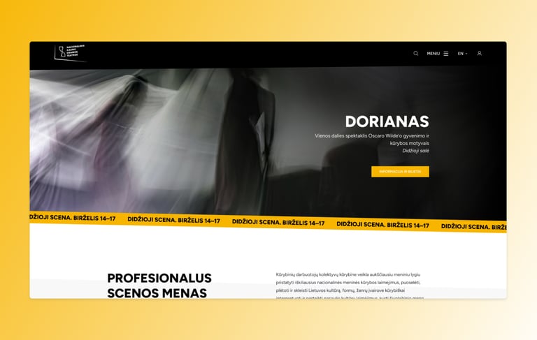 NKDT reprezentatyvusis tinklalapis. Pritaikytas turimas prekinis ženklas. Stengtąsi atskleisti spektaklių teatrališkumą ir įtraukti vartotoją tolimesnei kelionei.