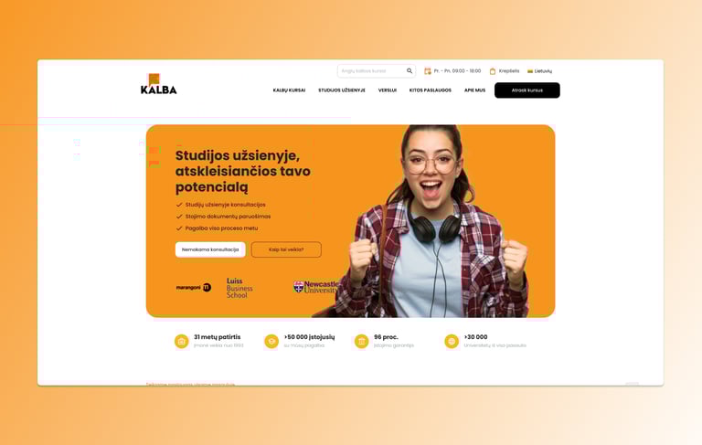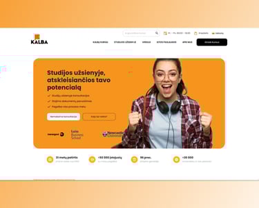 Kalba.lt studijos užsienyje puslapio atnaujinimas ir universitetų katalogo UX pagerinimas. Puslapių atnaujinimas įgyvendintas drauge su Kalba.lt ir Bright Projects komanda.