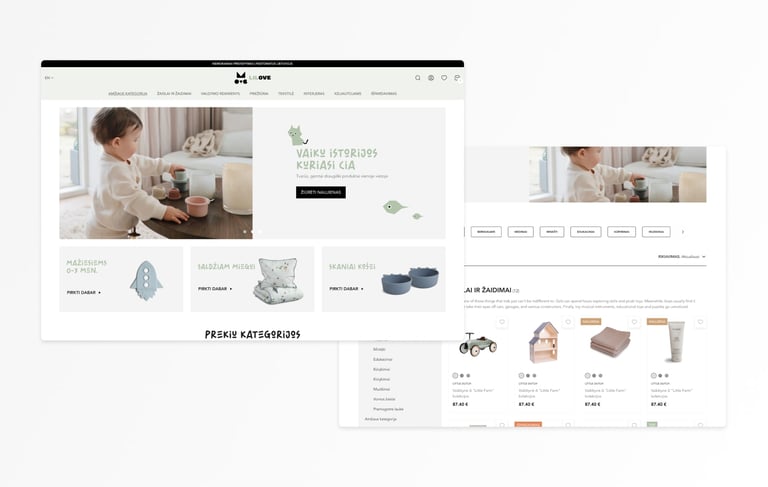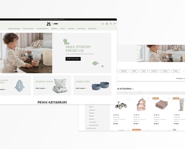 Atliktas esamo projekto auditas, pateikti pasiūlymai bendram sistemos gerinimui. Nupiešti pagrindiniai e-komercijos dizaino langai pagal turimo prekinio ženklo gidą. UX sprendimai atlikti remiantis Baymard praktikomis.