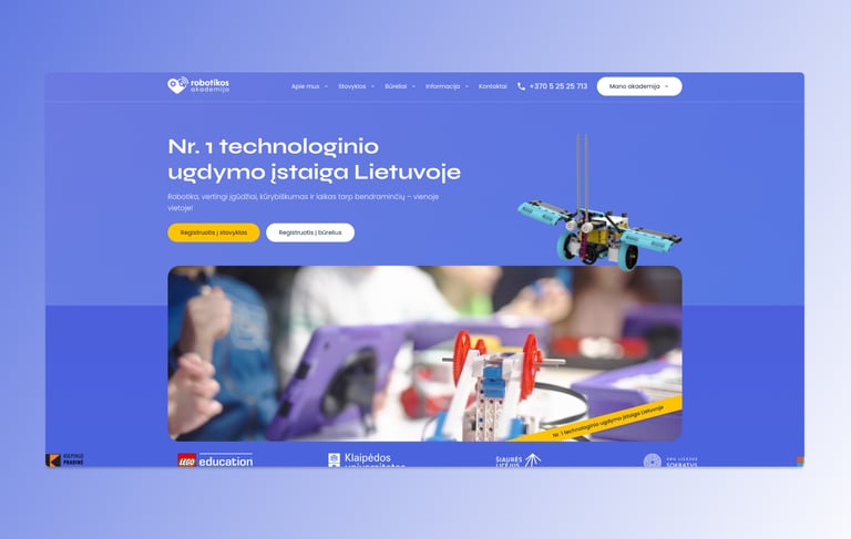 Tinklapio vizualinis atnaujinimas pagal naują Robotikos akademijos identitetą. Projektas kurtas bendradarbiaujant su RA ir Bright Projects komanda.